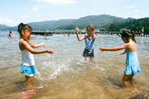 盆休み山ろくにぎわう 車控えでも入り込み増 お盆休み本番を前に、北アルプス山ろくは観光客らでにぎわっている。13から15日にかけて入り込みのピークを迎えると見られている。原油高騰を反映してか、自動車の乗り入れが例年に比べ少なく、電車や徒歩など利用し自然を楽しむ客が増えているようだ。JR東日本長野支社によると、県内への帰省ラッシュは13日からピークとなるとみている。13から15日まで、午前中のJR中央東線・新宿発スーパーあずさの指定席はほぼ満席だという。 |