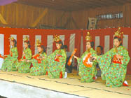 | 白馬切久保 かれん尾花踊り奉納 白馬村岩岳の霧降宮(きりふりのみや)切久保諏訪神社で15日、例大祭が開かれた。伝統芸能「尾花踊り」の奉納や、神事「七道面行列」などが行われた。 大のぼりを先頭に楽隊、みこし、浦安の舞・尾花踊りの踊り子ら100人余の関係者が長い行列を作り、塩島地区から神社まで練り歩いた。 尾花踊りでは、おはやしにあわせて地元の小学生女子6人が、稲穂に見立てたススキの穂を用いて豊作を祈願する踊りを奉納。かれんな踊りを県内外から訪れた大勢の写真愛好家がカメラにおさめていた。 |