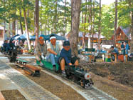 県内最大級の特設コース 白馬 ミニ鉄道フェスにぎわう 県内のミニSL愛好家でつくる「信州ミニ鉄道倶楽部」は4、5日の両日、白馬村和田野のログコテージ・エポック敷地内の「白馬ミニトレインパーク」(太谷真由己代表)で「第2回白馬ミニ鉄道フェスティバル」を開いている。全国各地の愛好家が所有する自慢の車両が特設コースを走り、大勢の来場者が乗車体験や愛好家との交流を楽しんでいる=写真。 同会場ではことし、特設コースを1周1`に拡張。これまでの単線から複線に増設し、勾配のある立体交差やトンネルを設け、従来よりさらにバリエーションに富んだコースで県内最大級の施設を作り上げた。 |