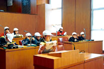 議場見学 「町政に質問」 池田小 池田町会染小学校(西網民雄校長)3年生40人は28日、同町役場の議場見学を行った。社会科、総合学習の授業で児童それぞれが考え、用意した行政への疑問や課題について実際の議場を使い、ただした。同校は近年、議場見学を行っていなかったが、「池田町について自分たちに何ができるか」との課題で学習している一環として実際の行政に触れようと役場を訪れた。 |