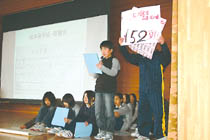 | 盲導犬育成のため募金を 大町北小生 学習発表で呼びかけ 大町市の大町北小学校(丸山峯男校長)で27日、児童が実践を通して学ぶ「やまびこの時間」の学習発表会が行われた。6年1組は視覚障害者との交流を紹介し、盲導犬育成に役立てようと募金を呼び掛けた。クラスの児童31人は5年時から、視覚に障害がある安曇野市穂高の古田綾夫さんや、盲導犬のバルト、アーニーと交流。校内で開いた音楽会に招待し、障害者に対する介助などを経験した。児童たちは交流を機に、障害者や福祉への理解を深めようと、自主的に課題を決めて学習。盲導犬育成にコストがかかり、必要な人に普及しない現状を学び、募金を決めた。 |