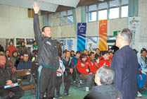 | 迫力クロスゲーム スキー・ボード鹿島槍で 大町市の鹿島槍スキー場で20、21の両日、FIS(国際スキー連盟)公認スキークロス鹿島槍カップの第1戦・第2戦が行われた。21日の第2戦では、スキーヤーやスノーボーダーら約70人の参加選手たちが、テーブルやバンク、キッカー(ジャンプ台)などが並べられた特設コースでしのぎを削った。観客も迫力あふれる競り合いに声援を送っていた。スキークロスは、さまざまな障害物があるコースを、4人で一斉に滑り降りて順位を競う競技。スキーとスノーボード各男女の部門別に、着順が早い選手がトーナメントで勝ち抜き、優勝を争う。来年のバンクーバー五輪には正式種目となることが決まり、スキー界でも注目の競技とされている。20日の第1戦には、アルペンスキーで2大会連続五輪に出場した佐々木明選手も参加した。 |