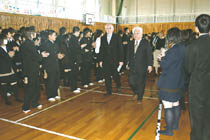 | EU大使と国際交流 大町高で外交官出張授業 EU各国の外交官による出張授業「EUがあなたの学校にやってくる」は7、8の両日、全国の中学、高校で開いた。大町市でも8日、バルカン半島北部・スロベニア共和国の駐日大使夫妻が大町高校(下坂一俊校長)を訪れ、全校生徒と交流した。ミラン・スケンデル大使は、EUの変遷や役割を説明した。ソバを使った料理や、アルプス山脈の風景など、故郷スロベニアを紹介。生徒が両国の生活の違いや共通点に感嘆、お礼に校歌や応援歌を披露した。 |