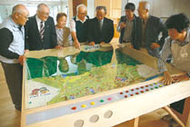 | 世界に一つ 手作り松川=@住民ボラのジオラマ完成 松川村の住民ボランティアでつくる「ジオラマ製作委員会」が昨年7月から製作をすすめていた、5000分の1スケールの世界にひとつだけの手作りの「松川村」ジオラマがこのほど、完成した=写真。文化、公共施設などが把握できるジオラマで、同村すずの音ホールに常設展示される。同委員会は昨年、同施設完成にあわせ、施設を訪れる人に村の魅力を伝えたいと設立。製作には村民有志のほか、子どもたちの勉強にも役立てようと松川中3年生など約40人が協力した。ジオラマは縦1・6b、横1・7b。地図上には等高線を忠実に再現した山や焼き物でつくった村内の史跡や公共施設、一つひとつ丁寧につくり上げた個人宅などを配置。電飾や音声案内で施設が分かるようにした。製作参加者は「何にも変えられない宝」「出来上がったらなかなかのものに仕上がった」とジオラマ完成を喜んだ。 |