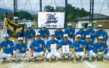 | 大町勢県壮年ソフトV 信州ブルースターズ2度目快挙 県ソフトボール協会主催の第4回理事長旗争奪壮年ソフトボール大会は9月26、27の両日、安曇野市穂高の有明運動場などで開き、大町市の「信州ブルースターズ」(BS)が第2回大会に続いて2度目の優勝を飾った。県内各地から40歳以上の選手で編成された23チームが参加し、トーナメント戦を展開。ブルースターズは初戦の2回戦で仁科クラブに9−0(5回コールド)で快勝。準々決勝では佐久平塚原クラブに3点差を追いつかれたが4−3でサヨナラ勝ちした。準決勝は投打がかみ合って安曇野フェニックスに7−0で6回コールド勝ち。下諏訪クラブとの対戦となった決勝は、5点リードで迎えた終盤に追い上げられたものの5−3で逃げ切り優勝。すべての試合で勝利投手となったエース甲斐沢慎二投手の好投が光った。 |