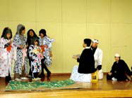 | はるかぜ発表会へ練習 安曇養護学校17日本番 池田町の安曇養護学校(布山清保校長)の小学部、中学部は、17日に開く、「第22回 はるかぜ発表会」に向けた練習に励んでいる。1年間の学習成果を発表し合い、保護者らに成長した姿を披露しようと、楽しみながら取り組んでいる。 2月に入り、教室での練習を生かした体育館ステージの練習が始まった。衣装を身に着け、自分の立ち位置を確認したりせりふのタイミングを合わせたりと、芝居やダンスの表現力を養っている。 |