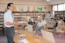学問大切池田の歩み 小澤館長セミナーで紹介 池田町図書館は30日、地域の歴史や文化を学ぶ「ふるさとセミナー」を開いた。町内から10人が受講、同町出身の小澤洋治館長が、図書館所蔵の資料や少年時代のエピソードを交えながら、自分たちが住む地域の歩みを紹介した。講習会は町の旧石器時代から昭和まで、かつての住民生活や町内各地区の由来などを解説。新池田学問所など池田ならではの文化を紹介し、学問や芸術を大切にしてきた、文化的特徴に触れた。小澤館長は長年、社会科教諭として県内中学校の教壇に立ち、ことし定年退職を機に館長に就任。教師としての経験を生かし、時代の流れをテープの長さで示したり、カイコの繭を使った製糸産業の盛衰など、町の歴史をわかりやすく説明していた。セミナーは同館司書が、住民に新たな館長を知ってもらい、図書館と親しんでもらおうと企画を提案。約8年ぶりの開講となる。 |