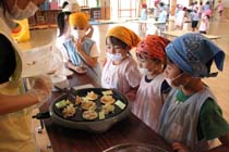 | ポテトピザ体験 松川北保育園クッキング 松川村北保育園(松島幸子園長)の年長児46人は22日、「ポテトピザ」作りを体験した。自分たちが植えて世話をしながら育てた野菜を収穫し、調理し食べる同園ならではの食育の一環。 |