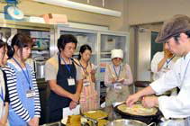 | 本格的ガレット作り習得 白馬クレーピエ養成講座 白馬商工会主催の「第5期白馬クレーピエ養成講座」の2回目の講座が14日開かれた。初企画として白馬クレーピエの資格を取得し、自分の施設でガレットを提供しているクレーピエがガレットの作り方を指導。本格的な技術の習得をめざした。 第1期のクレーピエに認定された、山口良幸さんと原真教さんがガレットの生地の配合、練り方の基本を細かく伝授。基本の生地に卵とハム、チーズを載せた「コンプレート」と呼ばれるガレットの焼き方を実演した。 |