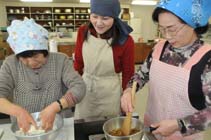 | 手軽にカレーパン作り 小谷村公民館で料理教室 小谷村公民館は18日、村内在住の平田真弓さんを講師に招き、料理教室を開いた。手軽な素材で簡単にできるカレーパン作りを体験。厳しい冬の寒さを吹き飛ばすような、スパイシーでホットな一品に舌鼓を打った。 平田さんはジャガイモを練りこむ、発酵いらずで手軽にできる生地の作り方を伝授。カレーの具も、市販のレトルトカレーを使い、さらに手間を軽減するように工夫した。 簡単な作り方ながら、揚げたては皮の外側がさっくり、中身がモチモチの食感で、熱々のカレーの具がとろり。「味も栄養も100点満点」と、参加者をうならせる出来栄えとなった。 |