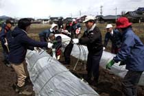野菜づくりで食育 大町市の「教室」開講 大町市の教育ファーム事業「たのしい野菜づくり教室」は7日、本年度の開講式と初回講座を市役所と同市高根町のたかね市民農園で開いた。食育推進に向け、さまざまな野菜の育て方を専門家に学び、おいしい野菜づくりの楽しさに触れる。 本年度は新規18家族、前年度から引き続きの9家族の計27家族が参加。11月まで、長ネギやナス、秋大根、白菜やサツマイモなど季節の野菜を、植え付けから畑の管理、収穫まで、一連の流れで学ぶ。 同事業は市の食育推進計画の一環として、平成21年から開かれてきた。市民が栽培から収穫までの野菜づくりを専門家に習って体験することで、農業への理解や食の安全性・重要性を広めるねらい。 |
