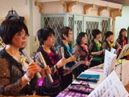 | 小谷村商工会女性部 トーンチャイム演奏会 音楽サークル「リンドン」 小谷村商工会女性部(荻澤千波部長)は9日、同村栂池のホテルサニーバレーで総会と会員によるトーンチャイム演奏会を開いた。 トーンチャイムはゴム製のハンマーがついた細長い筒で作られた楽器。手に持って振ることで、ハンマーが筒にあたり共鳴して音が出る仕組み。ハンドベルのように数人で音を分担して音楽を演奏する。 演奏を披露したのはミニバレーボールチームを作っていた女性部のメンバーら。チームワークを生かして音楽サークル「リンドン」を結成し、生涯を通じて楽しめる文化活動をしようと、老人施設などで音楽による慰問を続けている。今回は部員にまだ知らない人が多いトーンチャイムの生演奏にふれ、楽しんでもらおうと行われた。 |