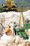 | 「雪中埋蔵」地酒を熟成 白馬錦 大町で掘り出し 大町市の酒蔵・薄井商店(薄井朋介社長)は24日、市内で白馬錦「雪中埋蔵」の掘り出し作業を行った。ことしで17回目となる恒例の作業。大町の雪の中に1月26日に埋蔵、約4か月間熟成させた原酒が、初夏の青空のもとに次々と掘り出された=写真。 「雪中埋蔵」は大北地域で契約栽培された酒米・美山錦を、精米歩合55lまで磨き、寒仕込みして寝かせた純米吟醸酒。地域の実りを生かし、自然を巧みに利用した地酒として好評を博している。 |