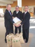 | 池田産 自慢の新米寄贈 農業祭実行委が社協に JA大北池田・会染支所などでつくる池田町農業祭・病院祭実行委員会(中島政治・実行委員長)は7日、池田産の新米コシヒカリ約120`を町社会福祉協議会へ贈った。 寄贈米は、同町で先月開催された農業祭・病院祭のなかで行われた第9回お米コンテストで、町内農家106件から出品があった自慢の米。ことしの池田産米は、いずれも食味値が80を超えるなど上質米となった。 同実行委員会による米の寄贈は今回で9回目となる。 |