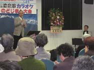 ご当地ソングで活気を 大町市 信濃恋歌カラオケ大会 ご当地ソング「信濃恋歌」で大町市に活気を−。第4回信濃恋歌カラオケのど自慢大会(志賀大介の詩を歌う会主催)が3日、大町商工会館2階大ホールで開かれた。会場を埋め尽くした約140人の来場者を前に、大北を中心とした歌自慢16人が出場、地元愛をメロディーにのせ熱唱した。 マヒナスターズの松平直樹さんや商工会議所副会頭の松田邦正さんらが見守るなか、出演者たちは歌いこんできた信濃恋歌をのびやかに歌い上げた。 合計年齢が309歳という4人組が1番から4番まで順に歌うなどユニークなステージもあり会場は沸いた。 |