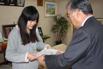| 日中友好の懸け橋に 中国人研修生 張さんに修了証 白馬村 白馬村は7日、県の国際交流事業の一環で受け入れた中国人研修生に対し、修了証を贈った。約3か月にわたって村内で働き、日本語と文化を学んだ、西安外国語大学3年生の張倩さん(19)をねぎらい、日中友好の懸け橋としての将来に期待を寄せた。 張さんは8月から道の駅白馬で働き、日本人の同僚に囲まれながら加工施設での特産品作りに携わっていた。最近では売店やレストランの厨房などを任され、観光客とも交流。「お客さんから『白馬っていいところ』と声をかけられ、うれしかった。皆さんのおかげで、言葉だけでなくいろんなことを勉強できた」と振り返った。 将来は通訳の仕事につき「中国人と日本人をつないでいきたい」という。 |