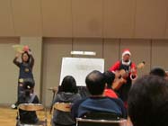 白馬村 手をつなぐ育成会と安曇養護 一足早いクリスマス 白馬村の障害者の保護者らでつくる「はくば手をつなぐ育成会」と安曇養護白馬小谷地区はこのほど、同村役場多目的ホールでクリスマス会を開いた。保護者やボランティアら多数が参加して、手作りの料理を囲みながら親ぼくを深めた。 同村の有志でつくる「こーみんまま&こーみんぱぱ」が招かれ、クリスマスにちなんだパネルシアターや歌を披露。全員で輪投げゲームやクリスマスソングを歌い、一足早いクリスマスを楽しんだ。 |