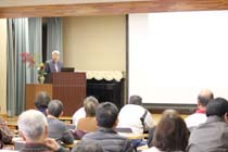 うつ病体験談交え講話 大町市中央保健センター 松南病院の田中恒孝氏 大町市はこのほど、同市中央保健センターで、松南病院田中恒孝名誉院長を講師に招き「私のうつ病体験〜自殺企図とその後の人生〜」と題した講演会を開いた。 同市が平成22年度から5か年計画で策定している心の健康づくり推進計画の一環で、自殺防止ゲートキーパー養成講座2回目と、心の健康づくり講演会の同時開催となった。講座受講生のほか、約35人の一般聴講者らが来場。精神科の医師でもある田中さんの貴重な体験談を交えた講話を聞いた。 |