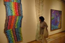 教え子が個性発揮 北ア展望美 小島孝子と女子美同窓展 北アルプス展望美術館(池田町立美術館)の所蔵作家小島孝子さんの母校、女子美術大学にゆかりのある現代女性作家たちの作品を展示した「第3回 小島孝子と女子美同窓展」が、同美術館安曇野ギャラリーで8月18日まで開かれている。 幼少時代を池田町で過ごした小島さんは、同大芸術学部を卒業後、同付属高校の教師を務め、46歳の若さで亡くなった。所蔵作品700点が同美術館へ寄付され、開館への道筋を開いた。 |