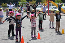 お年寄りと体動かす どんぐり保「さわやか交流」 大町市社山下のどんぐり保育園(降籏恵子園長)でこのほど、社地区社会福祉協議会(佐藤武夫会長)による「さわやか交流」が開かれた。46人の園児たちと地域のお年寄りなど13人が体操やフォークダンスなどで交流した。 3世代交流の一環として地域のお年寄りが1年に3度、七夕やクリスマスなどに園を訪れ、園児たちと交流している。 |