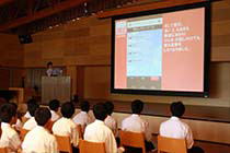 携帯端末正しい知識を 白馬中学校で親子講演会 白馬村の白馬中学校は17日、生徒と保護者を対象にした親子講演会を開いた。スマートフォンなどの携帯情報端末が子どもたちにも普及するなか、家庭と学校が連携し生徒のインターネットトラブルを防ごうと、正しい知識の啓発を図った。 講演会では東京都のソフトウェア会社デジタルアーツの工藤陽介さんが講師となり、若者に人気のアプリケーションを例に、チャット上のいじめやゲームへの依存など、誤った使い方による生活への悪影響を紹介した。 |