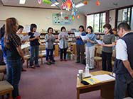 | 読み聞かせ楽しむコツ学ぶ 池田図書館人形劇団代表講師に 池田町図書館は19日、「よみきかせをもっと楽しもう講座」を開いた。安曇野市の人形劇団ホーボーズパペットシアター代表・服部哲さんを講師に、子育て中の母親など10人が参加し、読み聞かせを楽しむコツを学んだ。 「口の形をはっきりと」というアドバイスのもと、基本的な発声や早口言葉を繰り返した。各自、用意した絵本で読み聞かせの実践を行った。昔話や人気作家の絵本、歌の絵本など、お気に入りの一冊をエピソードを交えながら丁寧に読んだ。 |