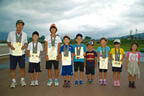 県大会8種目で優勝 池田ローラースケート愛好会 池田町ローラースケート愛好会の小学生らが、長野市で8月下旬に開催された県ローラースケートスピード大会で、出場9種目のうち8種目で優勝に輝くなど大活躍した。スピードスケート国体優勝やマスターズ世界大会出場などスケート界の先駆者で、同会代表の那須功宜さんから直々に指導を受ける愛好会選手たち。スケート技術の高さを見せ付けた。 |