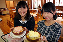 恋人の聖地・大町市をイメージした「ふんわりハートの信濃大町スフレカレー」の提供が、国営アルプスあづみの公園大町・松川地区始まった。信州大学の学生が考案した特別メニューで、14日のバレンタインデーや合併記念イベント「信濃大町の冬を楽しもう」に合わせての企画。「恋人同士で味わって」と願いを込めた。 |