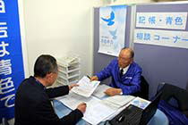 青色申告は10万円〜65万円の特別控除が受けられるなど、節税のメリットがある。相談コーナーでは会員が、白色申告と青色申告の違いやメリット、記帳のポイントなどを教えている。