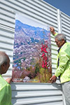松川中は毎年、生徒有志が夏休みを利用し、「いわさきちひろの水彩技法体験」の講師などボランティアを行っている。昨年まで来館者から集まった体験参加費を、県北部地震で被災した栄村に寄付していたが、ことしは身近な自治体の被災を受け、両村に贈った。