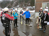 小谷村消防団は5日、林野火災対策訓練を下里瀬地区の村診療所駐車場で開いた。本部と各分団の幹部ら約30人が、春に多発する野焼きなどによる火災を警戒し、実践的な訓練や住民への啓発を行った。