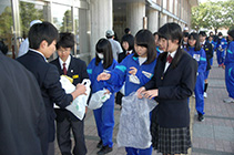 登校した生徒たちの手には、ゴミがぎっしりと入った袋が。今年の「峻嶺の日」も、ペットボトルやタバコの吸殻、空き缶など大量のゴミを拾い歩いた。 |