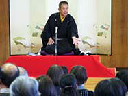 落語家の林家源平さんが、講演「落語家のヘルパー修行日記〜介護は十人十色」を行った。介護ヘルパーとしての活動や要介護者にならないための健康の秘訣ひけつなどを笑いを交えて語った。3人の子どもの学費のために、ヘルパーの仕事を始めたという林家さん。「介護をするには目的をもっているとがんばれる。介護する側、される側も楽しめることが好ましい」と述べた。デイサービスで繰り広げられる利用者とヘルパーとのやりとりを面白可笑しく語った。 |