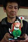 張り子は型に和紙の原料を流しこんで形を作り彩色した高さ25a、20a、15a、7aの4種類。丸みを帯びた愛嬌あいきょうがあるサルが扇を手に踊るものや、玉を掲げたかご入りのものなどが並んでいる。愛好家が手に取り「12体集めるのが楽しみ」などと顔をほころばせいた。 |