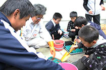 首都圏などからの修学旅行生を松川村や大町市などの農家で受け入れる農家民泊事業の本年度第1回目の受け入れが、11日から始まった。千葉県市川市立塩浜学園(小中一貫校)の9年生31人が松川村を訪れ、田植えなどを体験しながら住民と触れ合った。 |