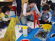 松川村の安曇野ちひろ美術館と村図書館はこのほど、絵本画家・あべ弘士さんを講師に招いたワークショップ「キリンをつくろう!」を、すずの音ホールで開いた。子どもや保護者など約30人が参加し、世界にひとつだけのキリンをつくった。 |
