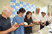 来年夏に大町市内で開催する「北アルプス国際芸術祭 信濃大町食とアートの廻廊」の実行委員会(会長=牛越徹市長)は22日、芸術祭への住民参加を図る新たな取り組みとして「おもてなし小皿プロジェクト」を発表した。芸術祭期間中、市内の小中学生と陶芸愛好家が制作したオリジナル小皿を市内飲食店で活用。多くの市民が携わる小皿の「もてなし」をきっかけに飲食店と観光客の交流を図る狙いで、市民一体となった芸術祭推進体制の強化につなげていく考えだ。 |