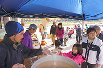 白馬村の農業法人ティーエム・しろうま農場(津滝俊幸社長)はこのほど、飯森地区の同農場直営の「農かふぇ」で恒例の収穫祭を開いた。自社農場で栽培した新米4種食べ比べやきのこ汁の振る舞い、餅つきや新鮮野菜の販売など、さまざまなイベントが行われ、地域住民や観光客でにぎわった。 |
