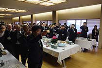 参加者は、「男性長寿日本一」と刻印されたヒノキ升を使って乾杯。昨年を振り返ったり、ことしの展望などを語り合っていた。 |