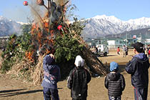 大北地域各地で、小正月の伝統行事「どんど焼き」が最盛期を迎えている。住民たちがやぐらを高く組み、正月飾りやだるまなどを焼いて一年の平安を願った。