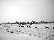 桜田町の住宅街に住む40代男性は群れの撮影に成功した。7時半ころ、「大きな犬がいる」との息子の声に玄関先に出ると、目の前を8頭のシカが走り抜けていった。とっさに携帯電話のカメラのシャッターを切った。「この場所に暮らして10年ほど、平地の住宅街でシカの群れとは初めて目にした」と驚きを隠せなかった。 |