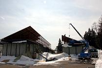 昨年12月の閉鎖後に県からリース会社に返還され、雪解けを待って解体に入った。3月に入り、周辺の除雪などに着手し、屋根などを剝がす作業が行われている。作業は今月中をめどに終わる見通しだ。 |