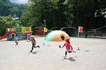 小谷村の小谷保育園(山田圭佐美園長、園児54人)でこのほど、1か月遅れの端午の節句にちなんだ「こいのぼり運動会」が開かれた。爽やかな晴天のもと、大空を気持ちよさそうに泳ぐこいのぼりに負けまいと、ことし初めての集団競技を楽しんだ。 |