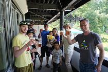 白馬村岩岳のクラフトビールの醸造所「HakubaBrewingCompany」でこのほど、「白馬村、ありがとう!会」イベントが開かれた。同所で白馬村産のクラフトビールを醸造・販売してから1周年が過ぎ、これまで支えてくれた人へ感謝を示そうと、初めて企画。支援者や友人知人ら100人余りが参加し、醸造所を営むコウバーン・ダニエルさん、ベイコン・ダニエルさんが醸した自慢のビールのふるまいで、交流を深めた。 |