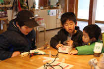 国営アルプスあづみの公園大町・松川地区「森の体験舎」で14日まで、「干支のクラフト戌づくり」が開かれている。ことしで5年目となるイベントで、参加者は松ぼっくりや小枝などの天然の材料を用いて、愛嬌のある犬のオブジェを制作している。 |