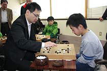 あこがれのプロと対局 大町囲碁教室で王五段が指導