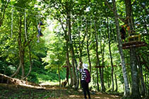 白馬村の白馬47マウンテンスポーツパークのアルパイン山頂駅に今シーズン、「アルパインアドベンチャー」が登場した。木漏れ日がさす標高1200bの森の中に、最高7bのさまざまなアイテムを設置。大人も子どもも楽しめる森林冒険施設としてオープンから高い人気を呼んでいる。 |