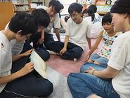 池田町図書館はこのほど、地元高瀬中学校の図書委員24人による恒例のお話会「なつやすみのおはなしでてこ〜い!スペシャル」を開いた。絵本の読み聞かせやわらべうたなどを通して、小さな子どもたちと交流した。