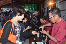 大町市内でこのほど開催された人気イベント「第11回北アルプス三蔵呑のみ歩き」。スタート時は雨天だったものの、県内外から1400人以上が訪れ、大町の清冽な水でつくられた日本酒を味わった。 |