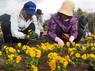 花フェスへパンジーで彩り 松川村づくりの会 ちひろ公園で定植作業